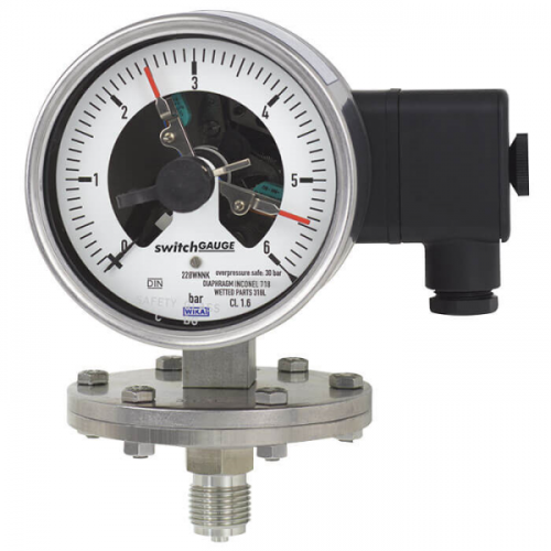 Proses basıncın yerel olarak gösterilmesi gereken ve aynı zamanda devrelerin yapılması veya kesilmesi gereken her yerde PGS43.1x0 switchGAUGE modeli kullanılabilir.