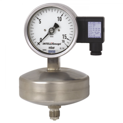 Yüksek kalite mekanik basınçölçer içerisine entegre edilmiş elektronik WIKA transmiteri elektriksel sinyal iletimi avantajlarını yerel mekanik gösterge avantajları ile birleştirmektedir.